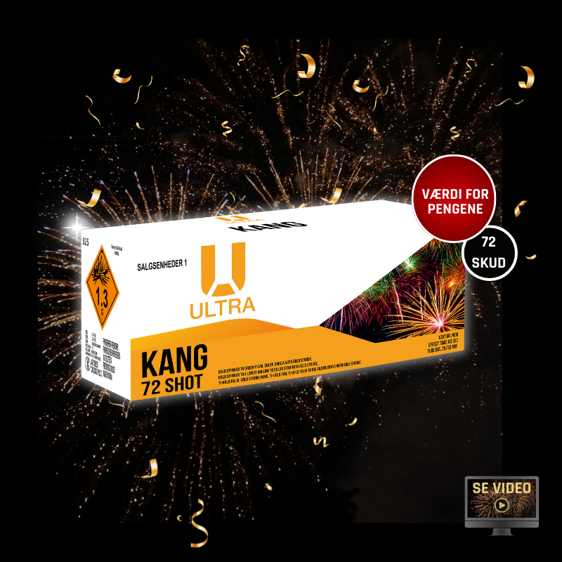 Ultra Kang er et avanceret compound show-batteri med 72 skud, udviklet til fyrværkerientusiaster, der ønsker mere end bare kraft. Batteriet kombinerer 25 og 30 mm kaliber, hvilket giver både variation i højden og tydelig fylde i hvert skud.