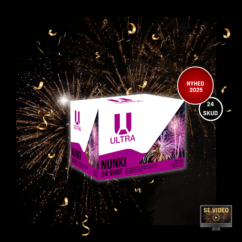 Ultra Nunki er et 30mm vifte-batteri med 24 skud, udviklet til at skabe et bredt og imponerende fyrværkeribillede. Skuddene affyres i vifteform, hvilket giver en markant horisontal spredning og får showet til at fylde mere på himlen end klassiske opadskydende batterier.