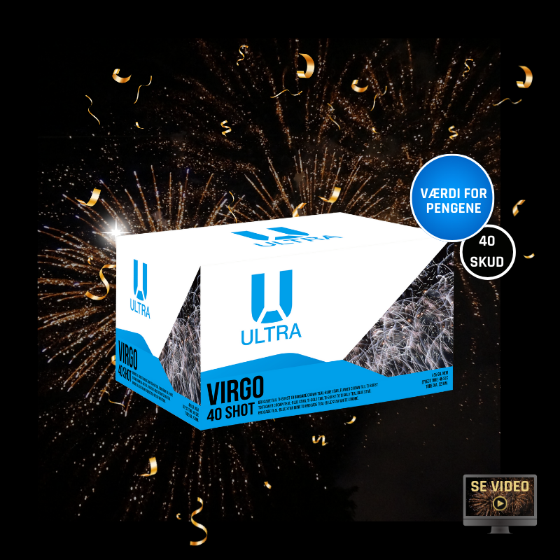Ultra Virgo er et 22mm vifte-batteri med 40 skud, designet til at skabe et bredt og åbent fyrværkeribillede på nattehimlen. Skuddene affyres i vifteform, hvilket giver en tydelig horisontal spredning og får showet til at fylde mere – selv i et overskueligt format.
