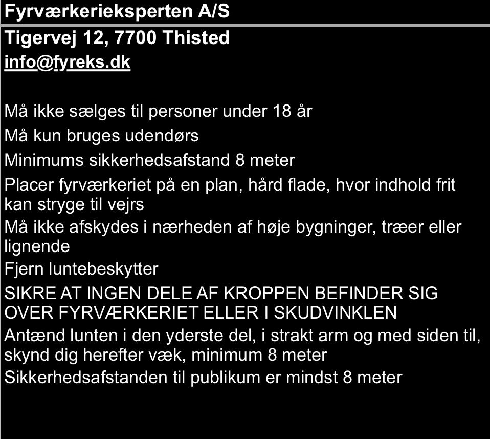 Alt vores fyrværkeri er nøje udvalgt fra pålidelige leverandører og lever op til høje krav om kvalitet og sikkerhed. Produkterne er designet til at skabe flotte lys- og farveeffekter, der gør din nytårsaften både festlig og mindeværdig.