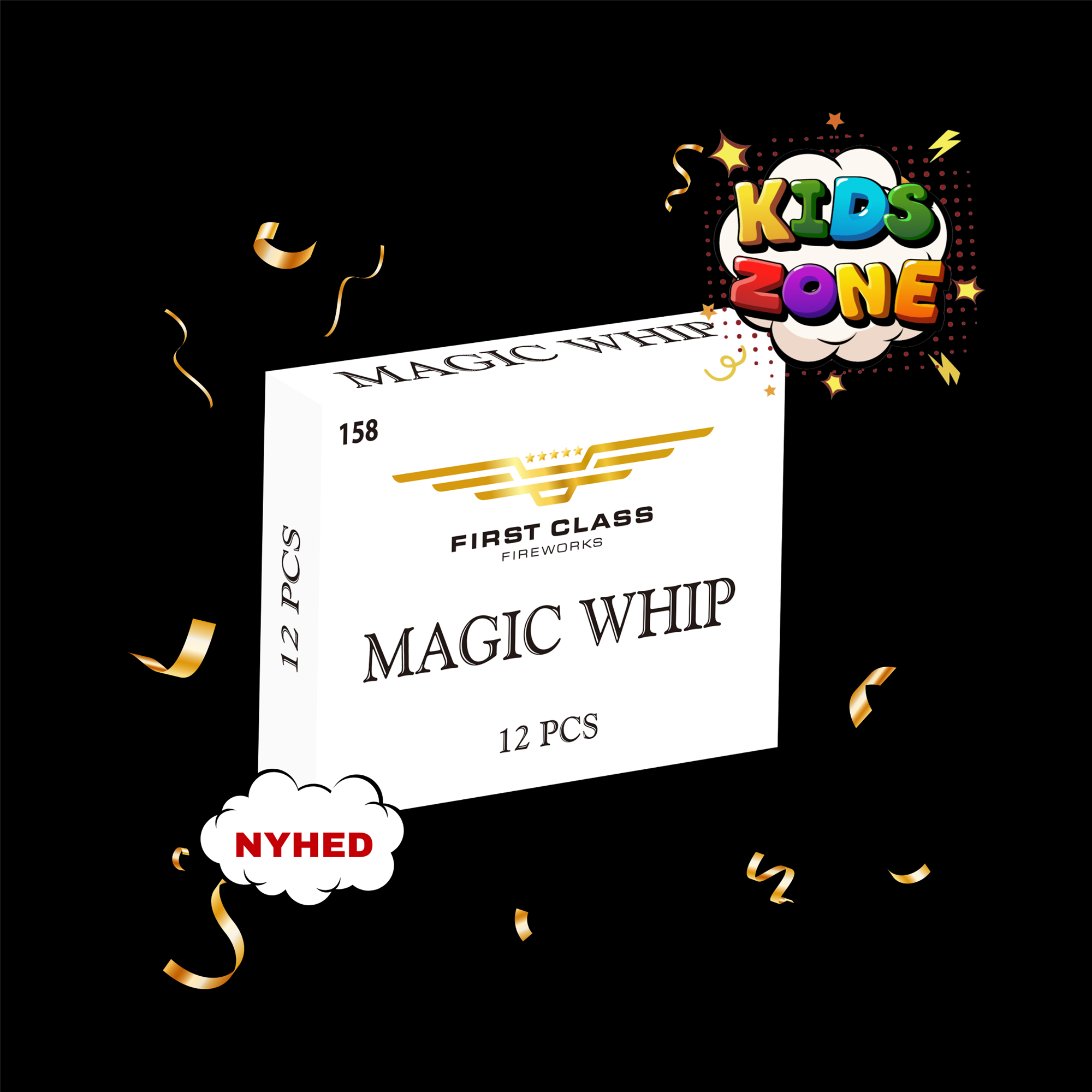 Magic Whip er et nyt og underholdende fyrværkeriprodukt, skabt til den unge fyrværker, der gerne vil prøve noget anderledes. Med 12 skud fordelt over 0,5 meter skaber Magic Whip en karakteristisk og sjov effekt, som adskiller sig fra klassisk fyrværkeri.