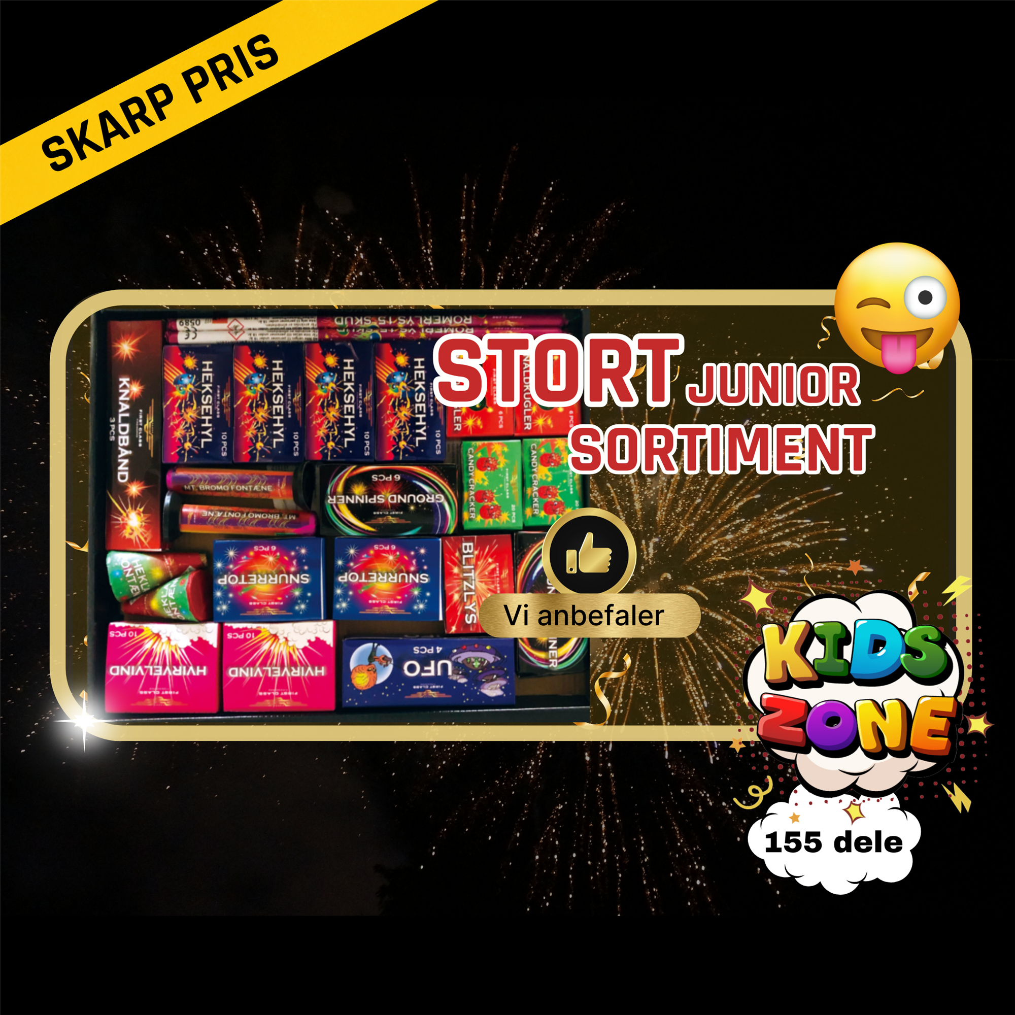 Forestil dig en super sjov fyrværkeripakke fyldt med knaldperler, snurrende snurretoppe, mini-fontæner og højlydte hekse hyl! Perfekt til den eventyrlystne fyrværker, der vil opleve krudt med lys og sjov effekt.