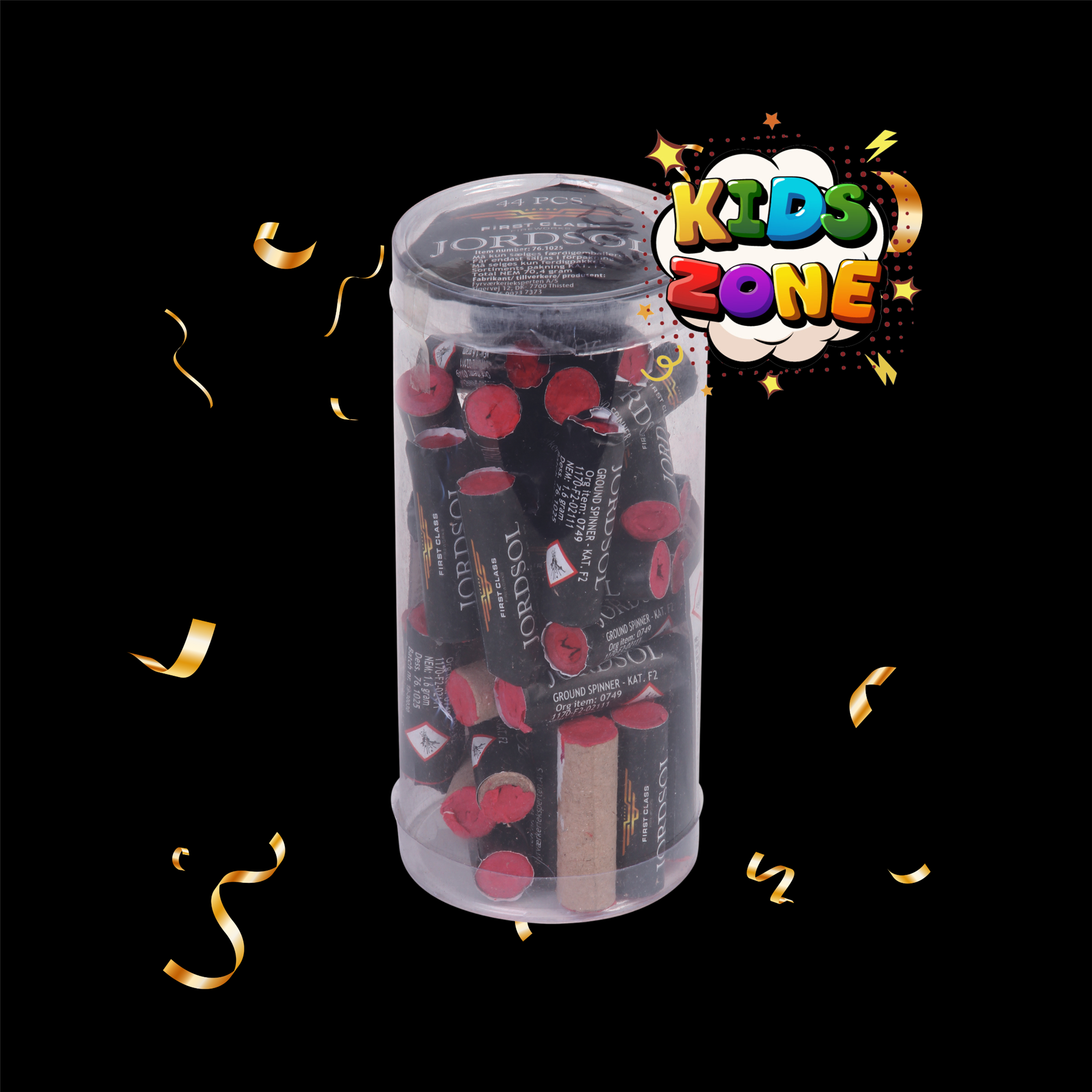 Spinnere / Jordsole er et klassisk og visuelt fyrværkeriprodukt, der skaber glæde med sine snurrende effekter i tre forskellige farver. Når de tændes, begynder de at rotere og sprede lys omkring sig, hvilket giver et sjovt og iøjnefaldende show tæt på jorden.