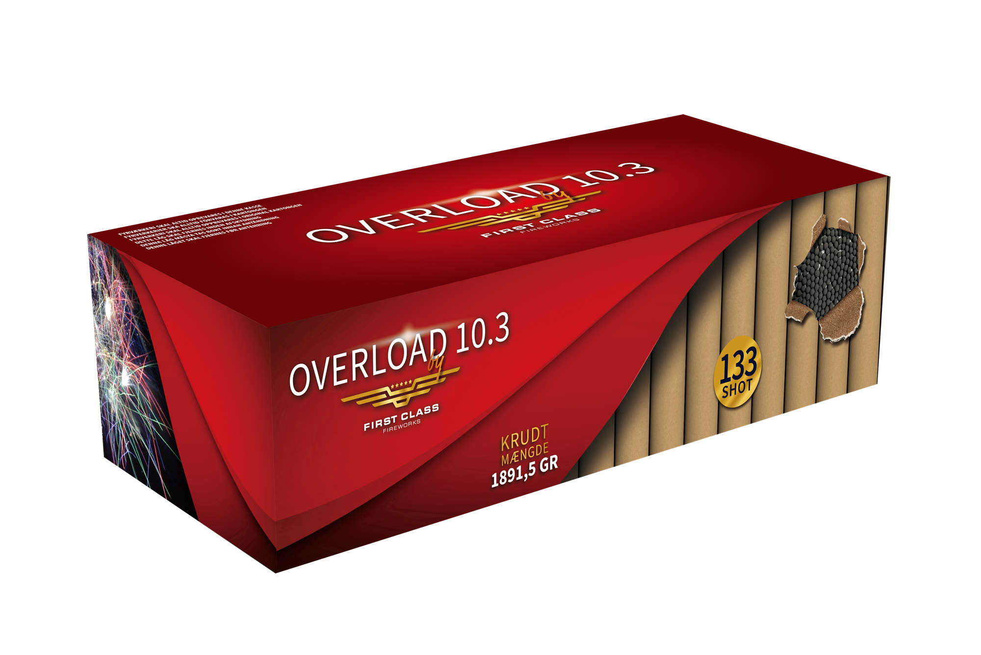 Overload 10.3 - Det ultimative finalebombardement! Her oplever du en eksplosion af 133 skud af livlige farver og kraftig sølvbrokade, som regnes for markedets mest intense finalebombardement. En fortryllende afslutning på et forrygende fyrværkerishow. Det perfekte match til din nytårsfest!
