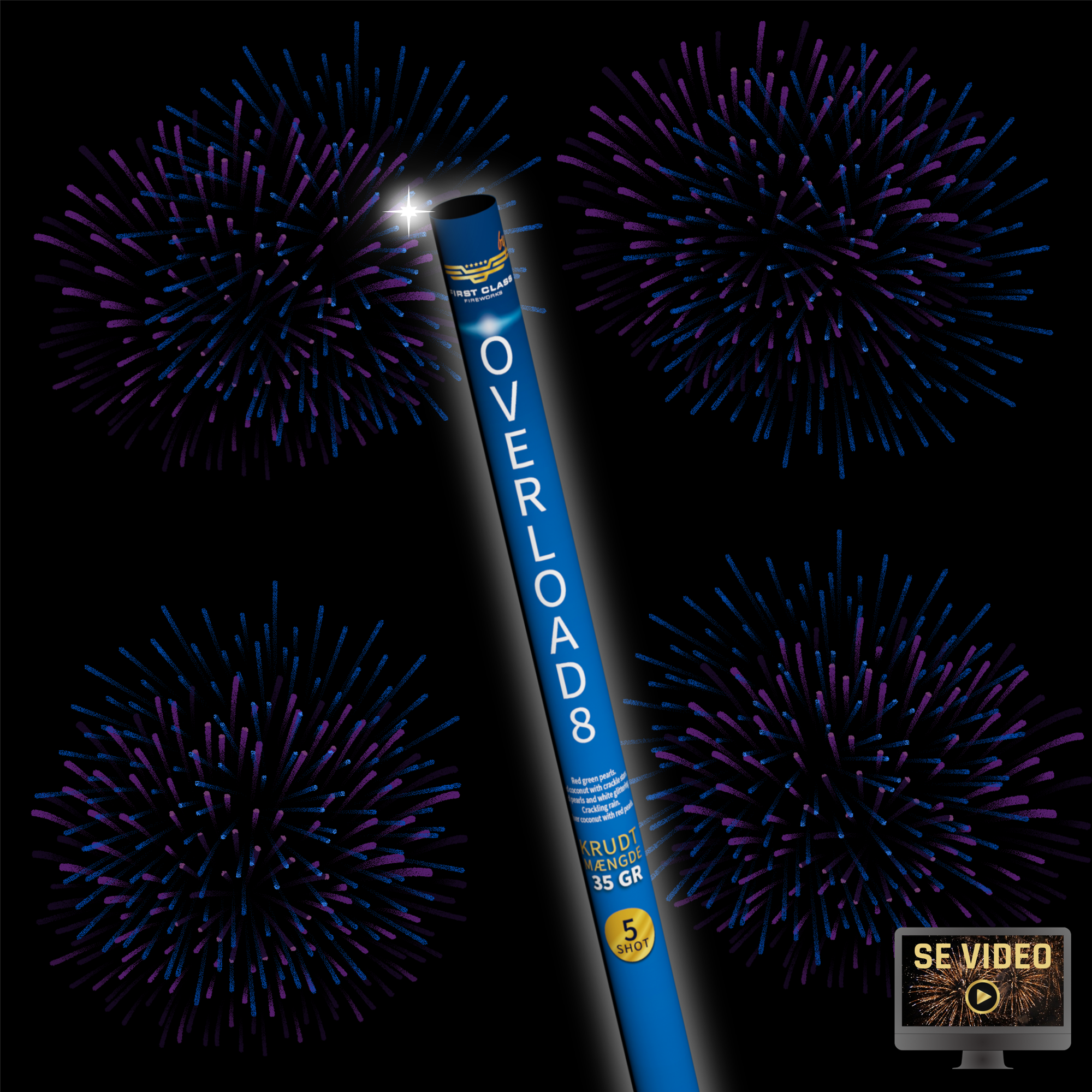 Overload 8 er et 5-skuds bomberør fra Overload by Firstclass, skabt til dig der ønsker rene og tydelige guldeffekter uden unødige variationer. Hvert skud skyder en gylden brokade, som folder sig pænt ud og efterlader et klart og roligt guldglimt på himlen.